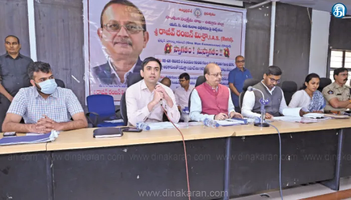 சித்தூர் : எஸ்சி துணை சாதிகளின் வகைப்பாட்டை விசாரிக்க அமைக்கப்பட்ட ஆணையத்தின் தலைவராக நியமிக்கப்பட்டுள்ள ஓய்வு பெற்ற ராஜீவ் ரஞ்சன் மிஸ்ரா தலைமையில் நேற்று எஸ்சி வகைப்பாட்டு விசாரணை நடைபெற்றது. சித்தூர் கலெக்டர் அலுவலகத்தில் நடந்த கூட்டத்தில் கலெக்டர் சுமித் குமார் மற்றும் அதிகாரிகள் கலந்து கொண்டனர்.