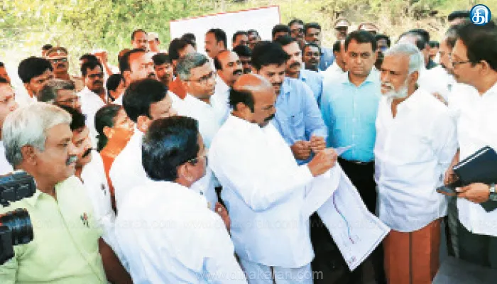 இந்நிலையில் மலை கோயிலுக்கு மாற்று மலைப்பாதை திட்டம் செயல்படுத்துவது தொடர்பாக நெடுஞ்சாலை துறை அமைச்சர் எ.வ.வேலு, இந்து சமய அறநிலையத்துறை அமைச்சர் பி.கே.சேகர்பாபு, தமிழ் வளர்ச்சித்துறை மற்றும் வெளிநாடு வாழ் தமிழர் நலத்துறை அமைச்சர் சா.மு.நாசர் ஆகியோர் இன்று காலை மலைக்கோயிலில் படாசெட்டிகுளம் பகுதியில் ஆய்வு செய்தனர். அப்போது, மாற்று மலைப்பாதை திட்டத்தை செயல்படுத்துவது தொடர்பாக நெடுஞ்சாலைதுறை அதிகாரிகள் வரைபடம் மூலம் அமைச்சர்களுக்கு விளக்கமளித்தனர்.