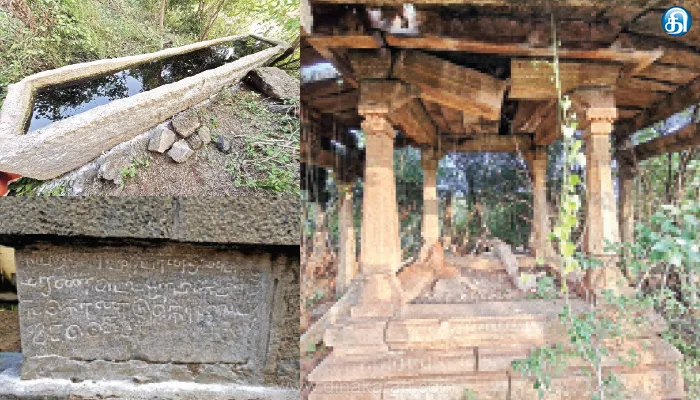 திண்டுக்கல் : ஒட்டன்சத்திரம் அருகே 10ம் நூற்றாண்டு காலத்தை சேர்ந்த பாண்டியர் கால கல்வெட்டு, வசந்த மண்டபம், ஆடு மாடு நீர் அருந்தும் தொட்டியை வரலாற்று ஆய்வாளர்கள் கண்டறிந்துள்ளனர்.