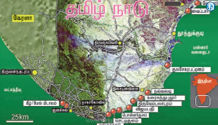 நெல்லை, தூத்துக்குடி, குமரி மாவட்ட கடற்கரைகள் எப்போதுமே இயற்கை சூழலுக்கும், கனிம வளத்திற்கும் பெயர் பெற்றவையாகும். தூத்துக்குடி, மணப்பாடு, முட்டம் உள்ளிட்ட கடலோர பகுதிகளில் பல தமிழ் சினிமாக்கள் எடுக்கப்பட்டுள்ளன. இந்த கடலோர கிராமங்கள் இயற்கை வளங்களை இழந்து, அழிந்துபோவதற்கும், நிலத்தடி நீர் இன்றி பாலைவனமாக மாறுவதற்கும் தாது மணல் நிறுவனங்களே காரணமாகும். தாது மணலை தோண்டி எடுக்கும் நிறுவனங்கள் மரங்களை மொட்டை அடித்ததோடு, தங்கள் போக்குவரத்துக்கு தடையாக இருக்கும் பனை மரங்களை கூட வேரோடு வெட்டி எடுத்த சம்பவங்களும் உண்டு.