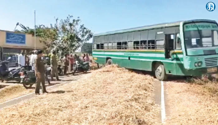 The post தார் சாலையில் உலர்த்திய கொள்ளு பயிர் சக்கரத்தில் சிக்கி அரசு பஸ் பழுது appeared first on Dinakaran.