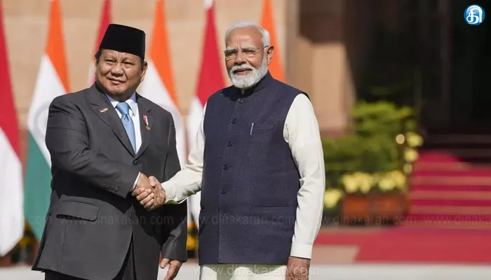 புதுடெல்லி: இந்தோனேசியா அதிபர் பிரபோவோ சுபியந்தா 3 நாள் பயணமாக இந்தியா வந்துள்ளார். குடியரசு தின விழாவில் சிறப்பு விருந்தினராக பங்கேற்க வந்துள்ள அவரை பிரதமர் மோடி நேற்று வரவேற்றார். பின்னர் இரு தலைவர்களும் இருதரப்பு உறவு குறித்து பேச்சுவார்த்தை நடத்தினர். இதில், கடல்சார் பாதுகாப்பு ஒத்துழைப்பை மேலும் வலுப்டுத்துவதற்கான ஒப்பந்தம் கையெழுத்தானது.