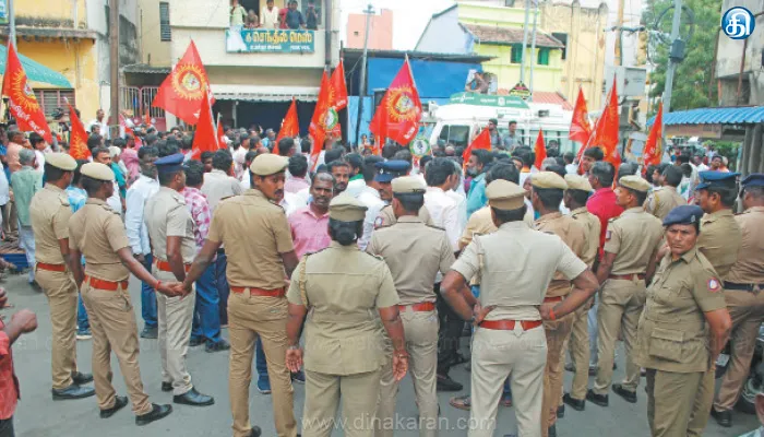 ‘‘பெரியார் பற்றி தவறாக பேசிய சீமான் இந்த இடத்தில் பிரசாரம் செய்யக்கூடாது’’ எனவும் கோஷமிட்டனர். நாதகவை சேர்ந்தவர்களும், எதிர்ப்பு தெரிவித்து கோஷங்கள் எழுப்பினர். இதையடுத்து, அங்கு பாதுகாப்பு பணியில் இருந்த ஈரோடு டவுன் போலீசார் காங்கிரஸ் கட்சியினரிடம் பேச்சுவார்த்தை நடத்தினர். அப்போது, ஜூபைர் அகமது சாலையில் அமர்ந்து போராட்டத்தில் ஈடுபட்டார். அவரை போலீசார் சமாதனம் செய்து அனுப்பி வைத்தனர். இதேபோல் நாதகவினரிடமும் போலீசார் சமரசம் பேசினர். இதையடுத்து திறந்த வேனில் அங்கு வ்நத சீமான் ஒரு சில நிமிடங்கள் பேசிவிட்டு சென்றார். இச்சம்பவத்தால் அங்கு பெரும் பரபரப்பு ஏற்பட்டது.