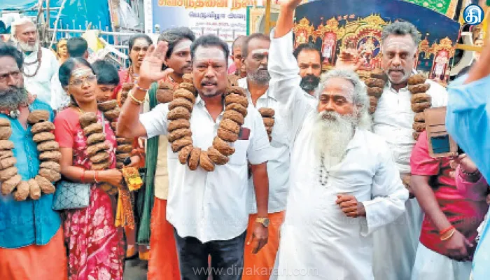 The post மாட்டு சாணத்தில் மட்டும் திருநீறு தயாரித்து வழங்கக் கோரி மாட்டுச்சாண வரட்டி மாலை அணிந்து சிவனடியார்கள் ஊர்வலம் appeared first on Dinakaran.