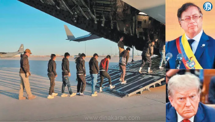 கொலம்பிய அதிபர் குஸ்டாவோ பெட்ரோவின் முடிவு அமெரிக்க தேசிய பாதுகாப்பை சீர்குலைத்துள்ளது. அமெரிக்க சந்தைகளில் விற்கப்படும் அனைத்து கொலம்பிய பொருட்களுக்கும் 25 சதவீத அவசர வரி விதிக்கப்படும். அடுத்த ஒரு வாரத்திற்குள் இந்த வரி 50 சதவீதமாக உயர்த்தப்படும். கொலம்பிய நாட்டின் அதிகாரிகள் மற்றும் அதன் நட்பு நாடுகளுக்கு விசா கட்டுப்பாடுகள் விதிக்கப்படும். கொலம்பியாவுக்கு எதிரான இந்த நடவடிக்கை ஒரு தொடக்கம் மட்டுமே. கொலம்பியா அரசு தன்னிச்சையாக செயல்பட அனுமதிக்க மாட்டோம். அவர்கள் அமெரிக்காவிற்கு அனுப்பிய சட்டவிரோதமாக குடியேறியவர்களை திரும்பப் பெற வேண்டும்’ என்று கூறினார். இதற்கு பதிலளித்த கொலம்பிய அதிபர் குஸ்டாவோ பெட்ரோ, ‘புலம்பெயர்ந்தோரை ஏற்றிச் சென்ற இரண்டு அமெரிக்க விமானங்களை கொலம்பியா அனுமதிக்கவில்லை. டிரம்பின் செயல்பாடுகள் சரியாக இல்லை. புலம்பெயர்ந்தோரை குற்றவாளிகளைப் போல அமெரிக்காவால் நடத்த முடியாது. புலம்பெயர்ந்தோர் சிவில் விமானத்தில் கொலம்பியாவுக்கு அனுப்பி வைக்க வேண்டும். புலம்பெயர்ந்தோரை மரியாதையுடனும் கண்ணியத்துடனும் நடத்த வேண்டும்.