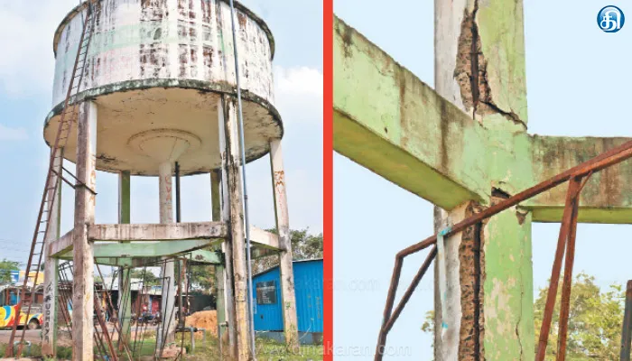 தற்போது, இந்தத் தொட்டியின் தூண்கள் மிகவும் பழுதடைந்து, அதில் உள்ள கான்கிரீட் பூச்சுகள் உதிர்ந்து கம்பிகள் வெளியே தெரிந்த படி ஆபத்தான நிலையில் உள்ளன. இந்த தொட்டியானது சரிந்து கீழே விழுந்தால் அப்பகுதிகளுக்கு குடிநீர் தட்டுப்பாடு ஏற்படும். எனவே, இந்த பழைய குடிநீர் மேல்நிலை நீர்த்தேக்க தொட்டியை அகற்றிவிட்டு புதிய மேல்நிலை நீர்த்தேக்க தொட்டியை கட்டித் தர வேண்டுமென பலமுறை சம்பந்தப்பட்ட அதிகாரிகளிடம் மனு கொடுத்தும் இதுவரை எவ்வித நடவடிக்கையும் எடுக்கப்படவில்லை என அப்பகுதி மக்கள் குற்றம் சாட்டுகின்றனர். எனவே, புதிய குடிநீர் மேல்நிலை நீர்த்தேக்க தொட்டி கட்டித் தர அதிகாரிகள் விரைந்து நடவடிக்கை எடுக்க வேண்டுமென கோரிக்கை வைத்துள்ளனர்.