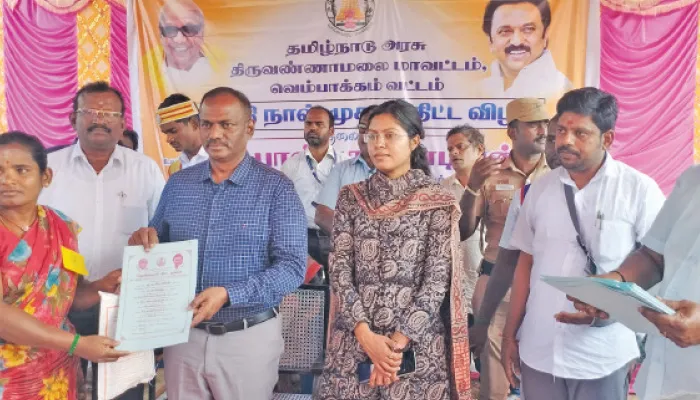 இந்நிகழ்ச்சியில் சப்- கலெக்டர் பல்லவி வர்மா, தாசில்தார் துளசிராமன், வட்டார வளர்ச்சி அலுவலர் மயில்வாகனன், வேளாண்மை உதவி இயக்குனர் (பொறுப்பு) ரேணுகாதேவி, முன்னாள் மாவட்ட ஊராட்சி குழு தலைவர் பார்வதி சீனிவாசன், வெம்பாக்கம் ஒன்றியக்குழு முன்னாள் தலைவர் ராஜூ, திமுக ஒன்றிய செயலாளர்கள் சீனிவாசன், தினகரன், மாவட்ட ஆதிதிராவிடர் அணி நலத்தலைவர் கருணாகரன் மற்றும் பலர் கலந்து கொண்டனர். சமூக பாதுகாப்பு திட்ட தாசில்தார் பெருமாள் நன்றி கூறினார்.