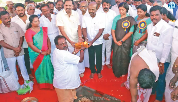 விழாவிற்கு ராணிப்பேட்டை கலெக்டர் சந்திரகலா தலைமை தாங்கினார். ஆற்காடு எம்எல்ஏ ஜெ.எல்.ஈஸ்வரப்பன் முன்னிலை வகித்தார். மாவட்ட சுகாதார அலுவலர் டாக்டர் செந்தில்குமார் வரவேற்றார். விழாவில் கைத்தறி மற்றும் துணி நூல்துறை அமைச்சர் ஆர்.காந்தி, மருத்துவம் மற்றும் மக்கள் நல்வாழ்வு துறை அமைச்சர் மா.சுப்பிரமணியன் ஆகியோர் கலந்து கொண்டு பூமி பூஜை செய்து அடிக்கல் நாட்டி பணிகளை துவக்கி வைத்தனர்.