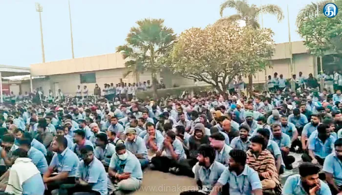 இதில், சிஐடியு தொழிலாளர்கள் சஸ்பெண்ட் செய்யப்பட்டதை திரும்பப்பெற வேண்டும், பழிவாங்கல் நடவடிக்கையை கைவிட வேண்டும். இன்டர்னல் யூனியனில் சேர தொழிலாளர்களை வற்புறுத்த கூடாது போன்ற கோரிக்கைகள் நிர்வாகத்திற்கு முன் வைக்கப்பட்டது. இதற்கு, நிறுவனம் மறுப்பு தெரிவித்த நிலையில் பேச்சுவார்த்தை தோல்வியில் முடிந்தது. இதன் காரணமாக, 2வது நாளான நேற்று காலை 8 மணி முதல் தொடங்கிய தொழிலாளர்களின் உள்ளிருப்பு போராட்டம் இரவு முதல் தொடர்ந்து நடைபெற்று வருகிறது. தொழிலாளர்களின் சஸ்பெண்ட் ஆணையை ரத்து செய்யும் வரை போராட்டம் தொடரும் என சிஐடியு தொழிலாளர்கள் தெரிவித்துள்ளனர்.