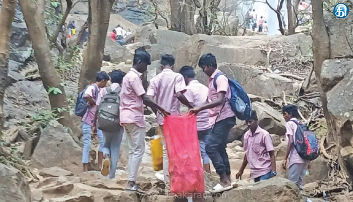 மாணவ, மாணவிகள் அரப்பளீஸ்வரர் கோயில் எதிரே உள்ள 1200 படிக்கட்டுகளை கடந்து, அங்குள்ள புகழ் பெற்ற ஆகாய கங்கை நீர்வீழ்ச்சி, பாம்பாட்டி சித்தர் வாழ்ந்த குகை, போகர் சித்தர் வாழ்ந்த குகையை பார்வையிட்டு, சுற்றுலா பயணிகள் வீசி சென்ற உணவு கழிவுகள், பிளாஸ்டிக் பைகள் ஆகியவற்றை சேகரித்து அகற்றினர்.