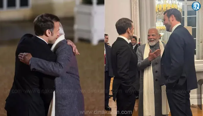 பின்னர் தலைநகர் பாரீஸுக்கு சென்ற பிரதமர் மோடியை பிரான்ஸ் அதிபர் இமானுவேல் மாக்ரான் ஆரத்தழுவி வரவேற்றார். அதை தொடர்ந்து இரவு விருந்தில் பிரதமர் மோடி பங்கேற்றார். இந்த விருந்தில் அமெரிக்க துணை அதிபர் ஜே.டி வான்ஸ், சீன துணை அதிபர் ஜாங் கூகின் உள்ளிட்டோர் பங்கேற்றனர். கூகுள் நிறுவனத்தின் தலை செயலதிகாரி சுந்தர் பிச்சை, ஓபன் ஏ.ஐ நிறுவனத்தின் தலைமை செயலதிகாரி சாம் அல்ட்மேன் உள்ளிட்டோரும் பங்கேற்றனர். தொடர்ந்து 2 நாள் செயற்கை நுண்ணறிவு உச்சி மாநாடு நடைபெற உள்ளது. ஏ.ஐ நிர்வகிப்பை பலப்படுத்துதல் ஏ.ஐ தொழில்நுட்பத்தை பயன்படுத்தும் பயனர்களுக்கு உலகம் முழுவதும் பாதுகாப்பு மற்றும் வெளிப்படை தன்மையை உறுதி செய்தல் ஆகியவை இந்த மாநாட்டில் விவாதிக்கப்பட உள்ளன. பிரான்ஸ் பயணத்தை தொடர்ந்து பிரதமர் மோடி அமெரிக்கா செல்ல இருக்கிறார்.