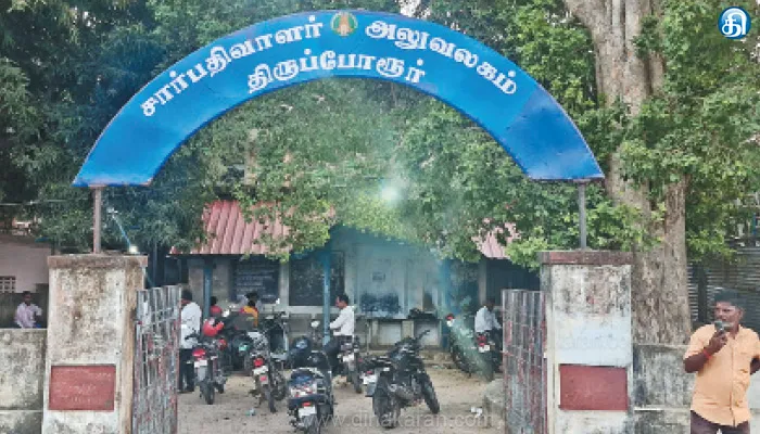 கடந்த, 1886ம் ஆண்டு தொடங்கப்பட்ட திருப்போரூர் சார் பதிவாளர் அலுவலகம் 137 ஆண்டுகளை கடந்து செயல்பட்டு வருகிறது. தமிழ்நாட்டிலேயே அதிக வருவாய் அளிக்கும் சார் பதிவகங்களில் முதலிடத்தை திருப்போரூர் பிடித்துள்ளது. ஆண்டுக்கு, 25 ஆயிரம் ஆவணங்கள் இங்கு பதிவு செய்யப்படுகின்றன. இந்நிலையில், தமிழ்நாடு அரசு திருப்போரூர் சார் பதிவகத்தை மாதிரி சார்பதிவகமாக தரம் உயர்த்தி நவீன வசதிகளுடன் கட்ட ஒப்புதல் அளித்து, அதற்காக 2 கோடி ரூபாய் ஒதுக்கீடு செய்துள்ளது. இதையடுத்து, பொதுப்பணித்துறை அதிகாரிகள் இந்த அலுவலக கட்டிடத்தை ஆய்வு செய்தனர். கடந்த 2008ம் ஆண்டு புதிய சார்பதிவாளர் அலுவலக கட்டிடம் கட்டப்பட்டுள்ளதால் அதை இடிக்க முடியாது என்று கூறி விட்டதாக தெரிகிறது.