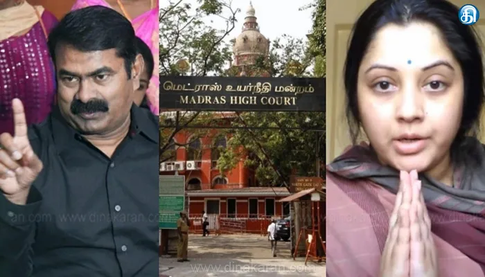 சென்னை: நடிகை விஜயலட்சுமி அளித்த புகாரின் அடிப்படையில், நாம் தமிழர் கட்சி ஒருங்கிணைப்பாளர் சீமானுக்கு எதிராக பதிவு செய்யப்பட்ட வழக்கை ரத்து செய்ய மறுத்த சென்னை உயர் நீதிமன்றம், 12 வாரத்திற்குள் இந்த வழக்கில் இறுதி அறிக்கை தாக்கல் செய்ய வேணடும் என்று காவல்துறைக்கு உத்தரவிட்டுள்ளது. திருமணம் செய்து கொள்வதாக கூறி ஏமாற்றியதாக நடிகை விஜயலட்சுமி, நாம் தமிழர் கட்சி ஒருங்கிணைப்பாளர் சீமானுக்கு எதிராக கடந்த 2011ம் ஆண்டு வளசரவாக்கம் போலீசில் புகார் அளித்திருந்தார். இந்த புகாரின் அடிப்படையில் பதிவு செய்யப்பட்ட வழக்கை ரத்து செய்யக் கோரி சீமான், சென்னை உயர் நீதிமன்றத்தில் மனுத்தாக்கல் செய்திருந்தார்.