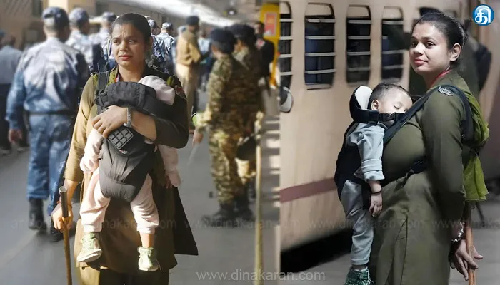 புதுடெல்லி: டெல்லி ரயில் நிலையத்தில், தனது குழந்தையை சுமந்தவாறே பிளாட்பார்மில் பயணிகளை ஒழுங்குபடுத்தும் பணியில் ஈடுபட்டுள்ள பெண் ஆர்பிஎப் போலீஸ் ரீனாவை பலரும் பாராட்டி வருகின்றனர். உத்தரபிரதேசத்தில் நடைபெறும் கும்ப மேளாவில் கலந்து கொள்வதற்காக தலைநகர் டெல்லி ரயில் நிலையத்தில் இருந்து புறப்பட்ட பக்தர்களில், கூட்ட நெரிசலில் சிக்கி 18 பேர் பலியாகினர். அதனால் வடமாநில முக்கிய ரயில் நிலையங்களில் பாதுகாப்பு அதிகரிக்கப்பட்டுள்ளது. இந்நிலையில் டெல்லி ரயில் நிலையத்தில் பாதுகாப்பு பணியில் இருக்கும் பெண் ஆர்.பி.எப் (ரயில்வே போலீஸ்) கான்ஸ்டபிள் ஒருவர், தனது ஒரு வயது குழந்தையுடன் பாதுகாப்பு பணியில் இருக்கும் புகைப்படம் சமூக வலைதளங்களில் வைரலாகிறது.