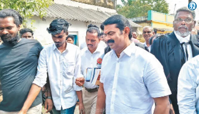 இதுதொடர்பான வழக்கு விசாரணை விக்கிரவாண்டி மாவட்ட உரிமையியல் மற்றும் நீதித்துறை நடுவர் நீதிமன்றத்தில் நடைபெற்று வருகிறது. இவ்வழக்கில் கடந்த முறை சீமான் ஆஜராகாததால் பிடிவாரன்ட் பிறப்பிக்கப்பட்டது. இதையடுத்து விசாரணைக்கு ஆஜராவதிலிருந்து விலக்கு அளிக்க சென்னை உயர்நீதிமன்றத்தில் சீமான் தாக்கல் ெசய்த மனுவும் தள்ளுபடியானது. இந்நிலையில், விக்கிரவாண்டி மாவட்ட உரிமையியல் மற்றும் நீதித்துறை நடுவர் நீதிமன்றத்தில் சீமான் நேற்று நேரில் ஆஜரானார். பின்னர் விசாரணையை மார்ச் 26ம் தேதிக்கு மாஜிஸ்திரேட் தள்ளி வைத்தார்.