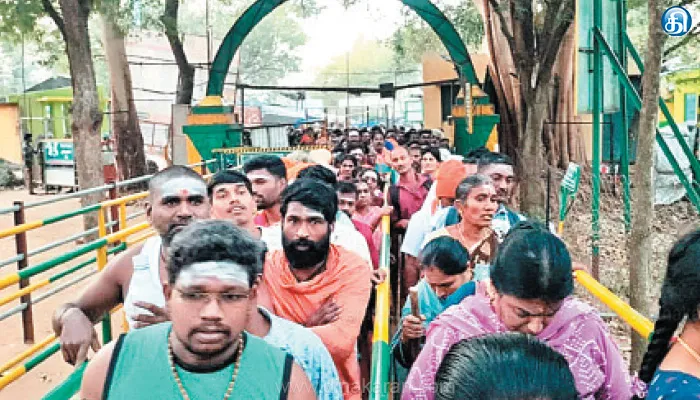 பக்தர்கள் காலை 6 மணி முதல் நண்பகல் 12 மணி வரை மட்டுமே தணிப்பாறை அடிவாரத்தில் இருந்து கோயிலுக்கு புறப்பட்டுச் செல்ல அனுமதி வழங்கப்பட்டுள்ளது. இதன்படி பக்தர்கள் காலை 6 மணி முதல் மலையேற அனுமதிக்கப்பட்டனர். அவர்கள் வரிசையாக மலையேறிச்சென்று சுவாமி தரிசனம் செய்கின்றனர். மாலையில் மாசி பிரதோஷ சிறப்பு வழிபாடு நடைபெறுகிறது.