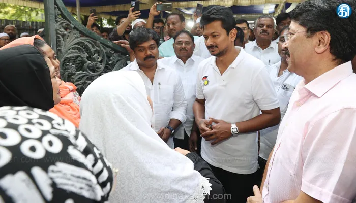 கல்வி, சமூக நீதி மற்றும் சிறுபான்மையினரின் உரிமைகளுக்காக அயராது பாடுபட்டவர் முகமது கலீலுல்லாஹ் சாகிப். இந்நிலையில், துணை முதல்வர் உதயநிதி ஸ்டாலின் நேற்று அவரதுஉடலுக்கு மலர்வளையம் வைத்து மரியாதை செலுத்தி, குடும்பத்தினருக்கு ஆறுதல் தெரிவித்தார்.