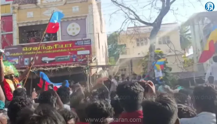 இந்நிலையில் இந்தாண்டு அதை தடுத்து, காவல்துறை முன்னெச்சரிக்கை நடவடிக்கையாக அவர்களை அங்கிருந்து அப்புறப்படுத்திய நிலையில் திண்டிவனம் நேரு வீதி, பழைய நீதிமன்றம் எதிரில் இரு கட்சியை சேர்ந்தவர்களும் அடுத்தடுத்து ஆடியபடி சென்றனர். அப்போது திடீரென 2 கட்சியினரும் தங்களது கொடியை உயர்த்தி வட்டமிட்டு ஆடியதால் பரபரப்பு நிலவியது. கட்சி கொடிகளை பயன்படுத்த காவல்துறை தடைவிதித்திருந்த நிலையில் அதையும் மீறி ஆடிச் சென்றனர்.