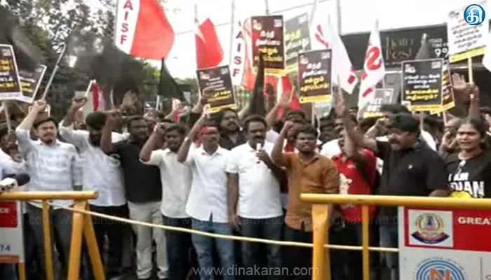 சென்னை: ஒன்றிய கல்வி இணை அமைச்சருக்கு எதிராக திமுக கருப்பு கொடி போராட்டம் நடத்தி வருகின்றனர். சென்னை ஐஐடிக்கு வருகை தரும் ஒன்றிய இணை அமைச்சர் மஜூம்தாருக்கு எதிர்ப்புத் தெரிவித்து திமுக மாணவரணி, திராவிட மாணவர் கழகம் கருப்புக் கொடி ஆர்ப்பாட்டம் நடத்தி வருகின்றனர். மாணவர் இயக்கங்களின் கூட்டமைப்பு சார்பில் கருப்புக் கொடி ஆர்ப்பாட்டம் நடைபெற்று வருகிறது.