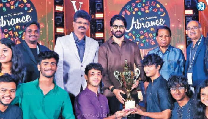 சர்வதேச வைப்ரன்ஸ் கலை விழாவில் சாம்பியன் பட்டம் வென்ற காட்டாங்ெகாளத்தூர் எஸ்.ஆர்.எம் பல்கலைக்கழக மாணவர்களுக்கு நடிகர் நாக சைதன்யா, விஐடி வேந்தர் முனைவர் கோ.விசுவநாதன் மற்றும் விஐடி துணை தலைவர் முனைவர் ஜி.வி.செல்வம் ஆகியோர் கோப்பையை வழங்கி கவுரவித்தனர். இறுதியாக நடந்த டி.ஜே ஜூலியா ப்ளிஸ் மற்றும் டி.ஜே ப்ராக்ரெஸ்ஸிவ் ப்ரதர்ஸ் ஆகியோரின் இசை நிகழ்ச்சியில் மாணவர்கள் பங்கேற்று ரசித்தனர். நிறைவு விழாவில், விஐடி இணை துணை வேந்தர் டி.தியாகராஜன், கூடுதல் பதிவாளர் முனைவர் பி.கே.மனோகரன், மாணவர் நலன் இயக்குநர் முனைவர் ராஜசேகரன் உள்ளிட்ட பலர் கலந்து கொண்டனர்.