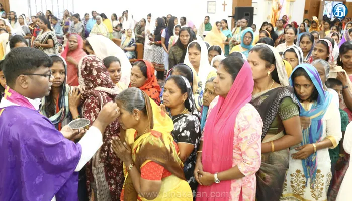 நெற்றியில் பாதிரியார்கள்., சாம்பலில் சிலுவை அடையாளம இட்டு தவக்காலத்தை தொடங்கி வைத்தனர். இந்த நிகழ்வில் கிறிஸ்தவர்கள் நூற்றுக்கணக்கானோர் பக்தியுடன் கலந்து கொண்டனர்.