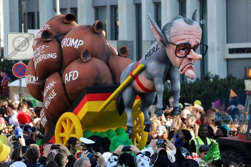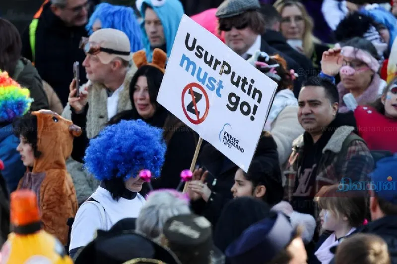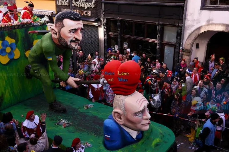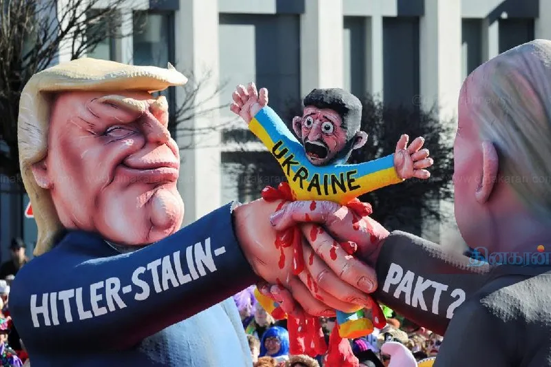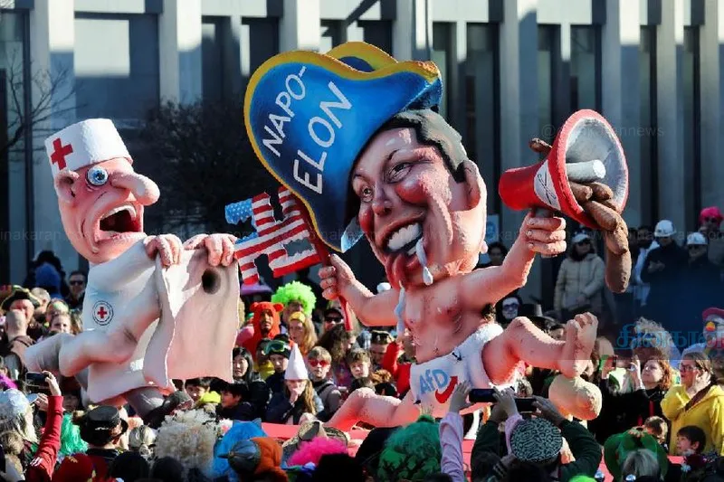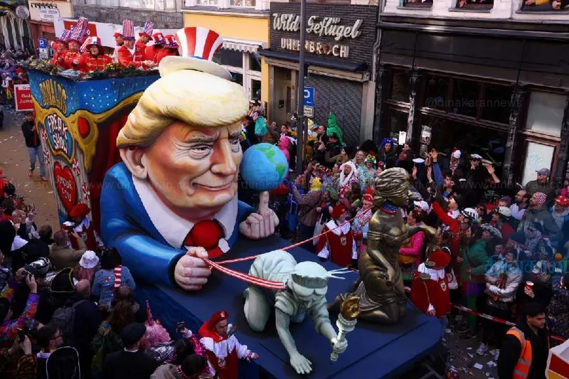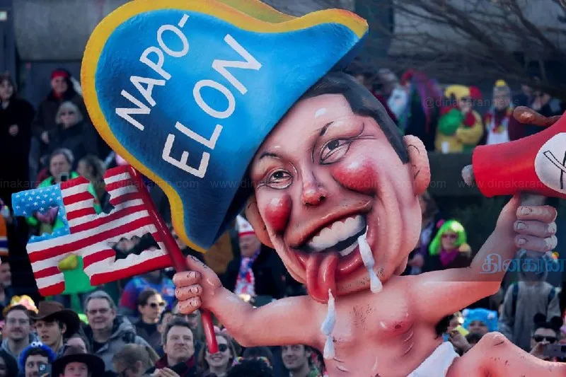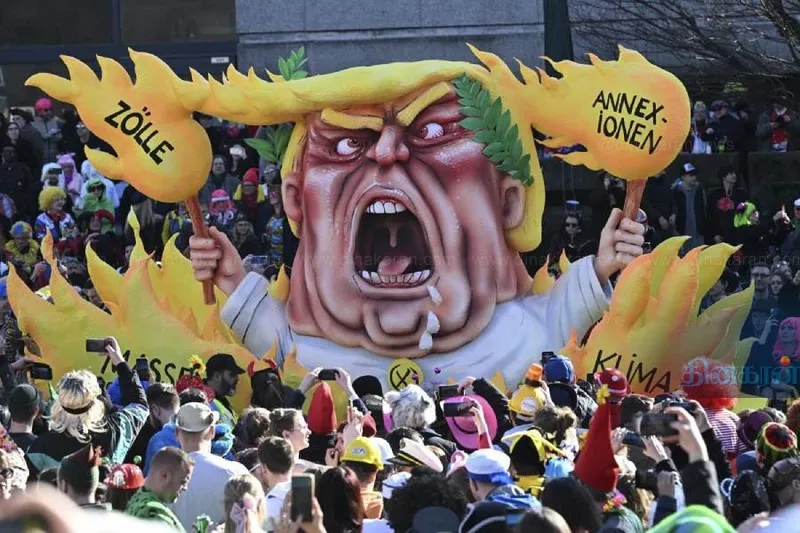 சிறையில் புடின், டிரம்ப் “வரி”, எச்சில் வடிக்கும் எலான் மஸ்க் : உலக தலைவர்களின் கேலி உருவ ஊர்திகள்!!