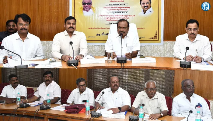 சென்னை : தமிழ்நாடு உடலுழைப்புத் தொழிலாளர்கள் சமூக பாதுகாப்பு மற்றும் நல வாரியம், தமிழ்நாடு சமையல் மற்றும் உணவகத் தொழிலாளர்கள் நல வாரியம், தமிழ்நாடு பாதையோர வணிகர்கள் மற்றும் நிறுவனங்களில் பணிபுரியும் தொழிலாளர்கள் நல வாரியம் ஆகிய மூன்று அமைப்பு சாரா தொழிலாளர் நல வாரியங்களின் கூட்டம் இன்று (06.03.2025) சென்னை தேனாம்பேட்டை தொழிலாளர் நல வாரிய கருத்தரங்க கூடத்தில் தொழிலாளர் நலன் மற்றும் திறன் மேம்பாட்டுத்துறை அமைச்சர் திரு.சி.வெ. கணேசன் அவர்கள் தலைமையில் நடைபெற்றது.