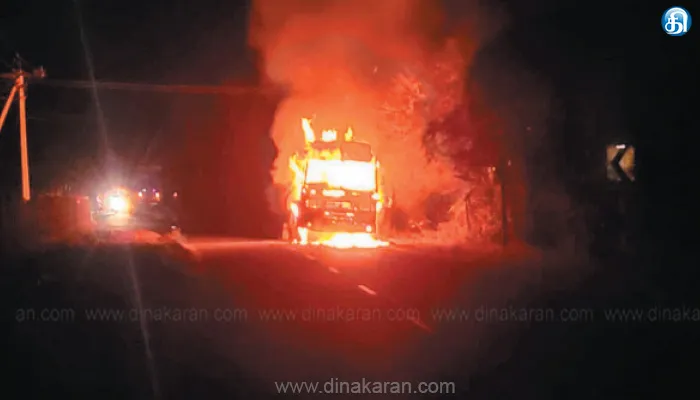 The post அரவக்குறிச்சி அருகே கேரளாவுக்கு சிமெண்ட்ஏற்றி சென்ற லாரி திடீரென தீப்பிடித்து எரிந்தது appeared first on Dinakaran.