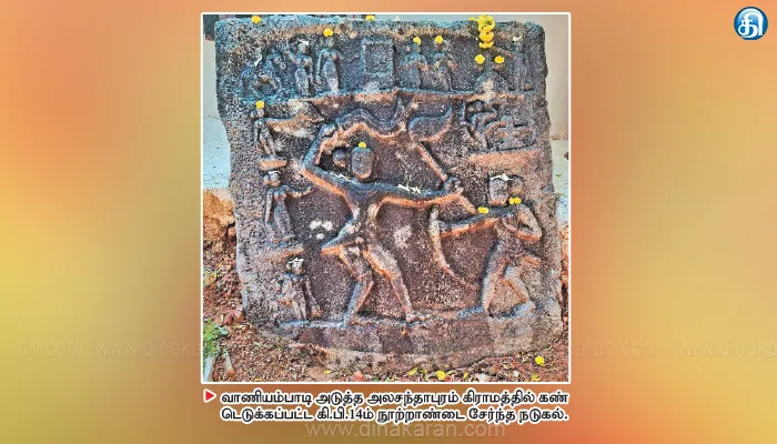 The post வாணியம்பாடி அடுத்த அலசந்தாபுரத்தில் கி.பி. 14ம் நூற்றாண்டு நடுகல் கண்டெடுப்பு appeared first on Dinakaran.