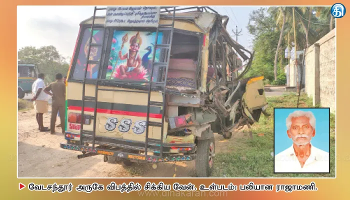 The post வேடசந்தூர் அருகே நின்ற வேன் மீது லாரி மோதி முதியவர் பலி appeared first on Dinakaran.