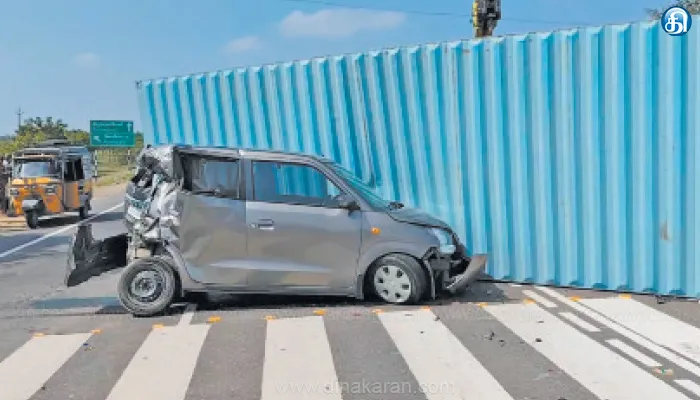 The post கோவில்பட்டி அருகே கண்டெய்னர் லாரி மோதி இரு கார்கள் நொறுங்கியது appeared first on Dinakaran.
