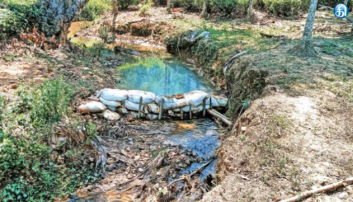 தற்போது கோடை வெயிலின் தாக்கம் அதிகரித்து வரும் நிலையில் ஆறு, நீரோடைகள் வற்றி காணப்படுகிறது. இந்நிலையில் ஆற்றை மறித்து தண்ணீர் சேமித்து விவசாயத்திற்கு பயன்படுத்தி வருவது பொதுமக்களிடையே அதிருப்தி ஏற்பட்டுள்ளது.