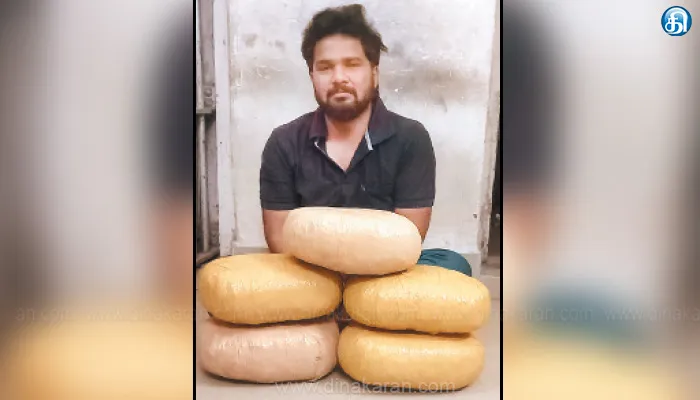 விசாரணையில் கோயம்புத்தூர் மாவட்டம், மாதம்பட்டி மகாலட்சுமி கோயில் தெருவைச் சேர்ந்த சுரேஷ்குமார் (26) என்பதும், இவர் ஆந்திர மாநிலத்தில் இருந்து கஞ்சா கடத்திக்கொண்டு கோயம்புத்தூருக்குச் செல்வதும் தெரியவந்தது. அவரை கைது செய்து, நீதிமன்றத்தில் ஆஜர்படுத்தி புழல் சிறையில் அடைத்தனர்.