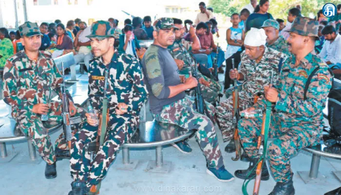 திருத்தணி: தமிழ்நாடு காவல் துறை சார்பில், அகில இந்திய துப்பாக்கி சுடும் போட்டி வரும் 17ம் தேதி செங்கல்பட்டு மாவட்டம், ஒத்திவாக்கத்தில் உள்ள தமிழ்நாடு காவல்துறை அதிரடிப்படை மைதானத்தில் தொடங்கி 5 நாட்கள் நடைபெற உள்ளது. இப்போட்டிகளில், நாட்டின் பல்வேறு மாநிலங்களிலிருந்து போலீசார் மற்றும் துறை பாதுகாப்பு படையினர் உள்ளிட்ட பல்வேறு பிரிவுகளில் பணியாற்றி வரும் போலீசார் பங்கேற்க உள்ளனர். இந்நிலையில், அசாம் மாநிலத்தைச் சேர்ந்த இன்ஸ்பெக்டர் டூடன் தலைமையிலான ரைபிள் சுடும் துணை பாதுகாப்பு படையினர் 29 பேர், பீகார் மாநிலத்தைச் சேர்ந்த இன்ஸ்பெக்டர் சவுஹான் தலைமையிலான 21 போலீசார் உள்பட 50 பேர் 2 குழுக்களாக ரயில் மூலம் நேற்று திருத்தணி ரயில் நிலையம் வந்தடைந்தனர்.