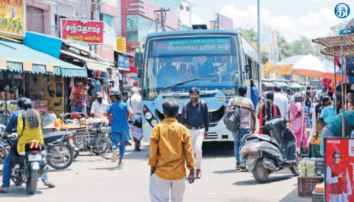 இதில், காமராஜர் வீதி நுழைவாயில் பகுதி சாலையின் இருபுறமும், நடைபாதையை ஆக்கிரமித்து பழம், டீ, ஸ்வீட்ஸ், பூக்கடை, உணவகம் என பல்வேறு கடைகள் வைத்துள்ளனர். இந்த, ஆக்கிரமிப்பாளர்கள் நடைபாதை மட்டுமின்றி, சாலையையும் 4 அடிக்கும் மேல் ஆக்கிரமித்து கடைகள் வைத்துள்ளனர். இதனால், சாலையின் அகலம் வெகுவாக குறைந்துவிட்டதால், வாகன போக்குவரத்து மிகுந்த காலை மற்றும் மாலை நேரங்களில் பள்ளி, அலுவலகம் சென்று வரும் பொதுமக்களுக்கு இடையூறு ஏற்படுகிறது.