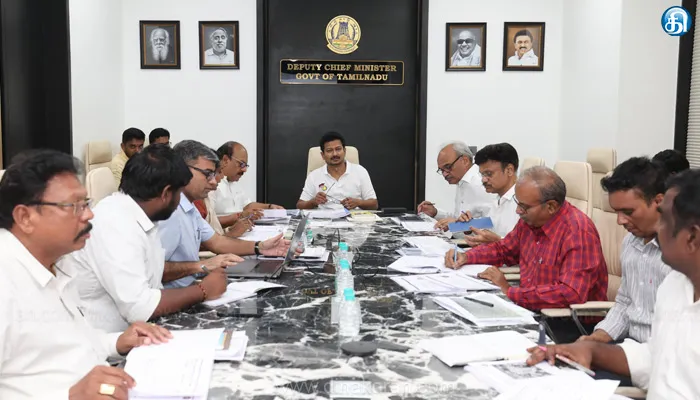 சென்னை: தமிழ்நாடு துணை முதல்வர் உதயநிதி ஸ்டாலின் தலைமையில் நேற்று தமிழ்நாடு நகர்ப்புற வாழ்விட மேம்பாட்டு வாரிய திட்டப் பகுதிகளில் மேற்கொள்ளப்பட்டு வரும் குடியிருப்புகளின் கட்டுமானப் பணிகள் குறித்த ஆய்வுக் கூட்டம் நடைபெற்றது. சென்னை மற்றும் சுற்றியுள்ள 48 திட்டப் பகுதிகளில் 15,455 அடுக்குமாடி குடியிருப்புகள் கட்டப்பட்டு வருகின்றன. இக்குடியிருப்புகள், உரிய காலத்திற்குள் முடிக்கப்பட்டு, முதல்வர் பயனாளிகளுக்கு வீடுகளை வழங்கும் வகையில் அலுவலர்கள் தொடந்து ஆய்வு மேற்கொண்டு கட்டுமான பணிகளை விரைந்து முடித்திட வேண்டும் என துணை முதல்வர் அறிவுறுத்தினார். இக்கூட்டத்தில் குறு, சிறு மற்றும் நடுத்தரத் தொழில் நிறுவனங்கள் துறை அமைச்சர் தா.மோ.அன்பரசன், தமிழ்நாடு வீட்டு வசதி மற்றும் நகர்ப்புற வளர்ச்சித் துறை செயலாளர் காகர்லா உஷா, தமிழ்நாடு நகர்ப்புற வாழ்விட மேம்பாட்டு வாரிய மேலாண்மை இயக்குநர் அன்சுல் மிஸ்ரா, வாரிய செயலாளர் காளிதாஸ், தலைமை பொறியாளர்கள் கிருஷ்ணசாமி, லால் பகதூர் மற்றும் அரசு உயர் அலுவலர்கள் கலந்து கொண்டனர்.
