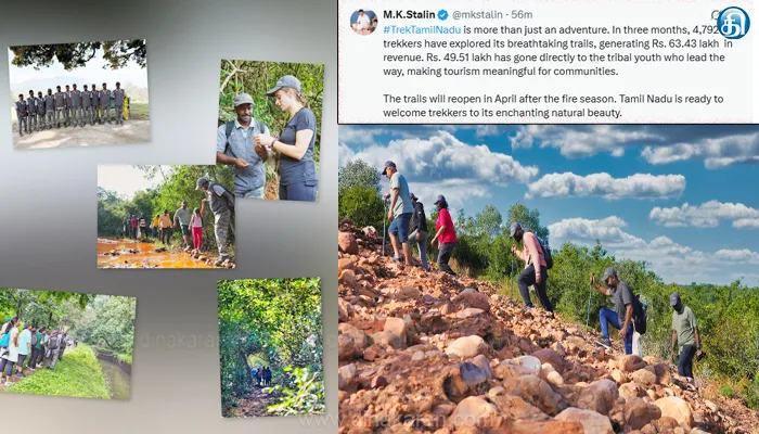 இந்நிலையில் டிரெக் தமிழ்நாடு’ சுற்றுலாவை அர்த்தமுள்ளதாக மாற்றியுள்ளது என்று முதல்வர் மு.க.ஸ்டாலின் தனது எக்ஸ் பக்கத்தில் பதிவிட்டு பெருமிதம் அடைந்துள்ளார். டிரெக் தமிழ்நாடு என்பது வெறும் சாகசப் பாதையை விட அதிகம். மூன்று மாதங்களில், 4,792 மலையேற்றப் பயணிகள் அதன் மூச்சடைக்கக்கூடிய பாதைகளை ஆராய்ந்து, ரூ. 63.43 லட்சம் வருவாய் ஈட்டியுள்ளனர்.