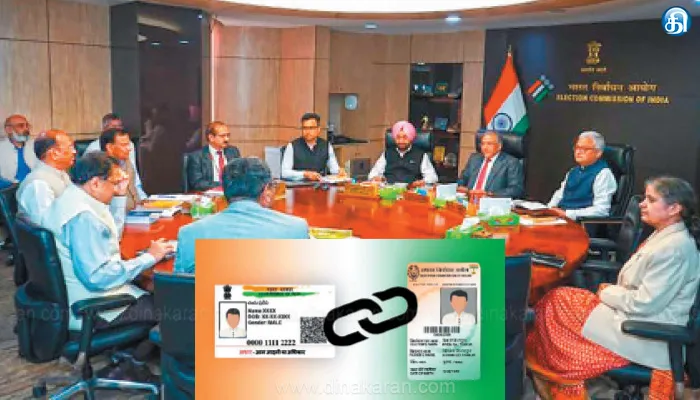 புதுடெல்லி: போலி வாக்குப்பதிவு மற்றும் போலி வாக்காளர் அடையாள அட்டைகளைத் தடுக்கும் வகையில், வாக்காளர் அடையாள அட்டையை ஆதார் அட்டையுடன் இணைக்க தலைமை தேர்தல் ஆணையம் முடிவு செய்துள்ளது. இந்திய தலைமை தேர்தல் ஆணையர் ஞானேஷ் குமார் தலைமையில், தேர்தல் ஆணையர்கள் சுக்பீர் சிங் சந்து மற்றும் விவேக் ஜோஷி ஆகியோர் முன்னிலையில், ஒன்றிய உள்துறை செயலாளர், ஒன்றிய சட்டமன்றத் துறை செயலாளர், மின்னணு மற்றும் தகவல் தொழில்நுட்ப அமைச்சக செயலாளர், யுஐடிஏஐ தலைமை நிர்வாக அதிகாரி மற்றும் தேர்தல் ஆணையத்தின் தொழில்நுட்ப நிபுணர்களுடனான ஆலோசனை கூட்டம் டெல்லியில் நிர்வாச்சன் சதனில் நடந்தது.