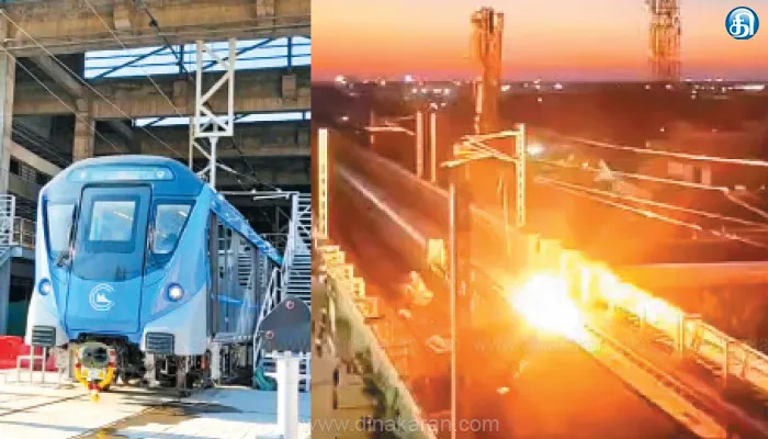 ஓட்டுனர் இல்லாத மெட்ரோ ரயில் சோதனை ஓட்டம் மின்சார பெட்டி வெடித்து தீப்பொறி கிளம்பியதால் நிறுத்தம்