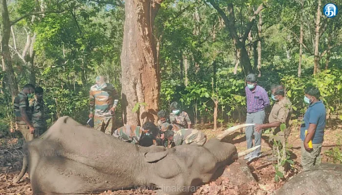 அப்போது சிங்காரா வனப்பகுதியை ஒட்டியுள்ள நார்தன்ஹே காப்புக்காடு மற்றும் தனியார் காப்பி எஸ்டேட் எல்லைப் பகுதியில் ஆண் யானை ஒன்று இரண்டு தந்தங்களுடன் இறந்து கிடந்ததை பார்த்தனர். மேலும் அவர்கள் உயர் அதிகாரிகளுக்கு தகவல் தெரிவித்தர். இதைத்தொடர்ந்து மசினகுடி துணை இயக்குநர் அருண்குமார் மற்றும் வனத்துறையினர் சம்பவ இடத்திற்கு சென்று பார்வையிட்டனர்.