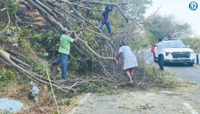 இதனால் போக்குவரத்து சிரமம் ஏற்பட்டது. இதுகுறித்து தகவலறிந்த நெடுஞ்சாலைத்துறை கோட்ட பொறியாளர் முரளி உத்தரவின்பேரில், உதவி கோட்ட பொறியாளர் ஆதவன் ஆலோசனையின்படி உதவி பொறியாளர் நித்தியானந்தம் முன்னிலையில் நெடுஞ்சாலைத்துறை பணியாளர்கள் சாய்ந்த மரத்தை அகற்றும் பணியில் ஈடுபட்டனர். இதையடுத்து மலைப்பாதை வழியாக போக்குவரத்து சீரடைந்தது. அப்போது, சாலை ஆய்வாளர் வெங்கடேசன் மற்றும் போலீசார் உடன் இருந்தனர்.