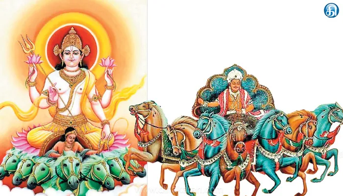 கீதை, பத்தாவது அத்தியாயத்தில் இருபத்தொன்றாம் ஸ்லோகத்தில் பகவான் ஸ்ரீ கிருஷ்ணன், சூரிய சந்திரர் இருவரும் தன் அம்சமாக இருப்பவர்கள் என்று உபதேசம் செய்துள்ளார். ஆண்டாள் பகவான் நாராயணனை “கதிர்மதியம் போல் முகத்தான்” என்று போற்றுகின்றார். அபிராமிபட்டர் அபிராமியை வர்ணிக்கின்றபோது முதல் பாடலிலேயே, “உதிக்கின்ற செங்கதிர் உச்சித்திலகம்” என்று சூரியனைப் போற்றுகின்றார். ராமனை ஆதித்ய திவாகரம் என்றும், கண்ணனை அச்சுத திவாகரம் என்றும், நம்மாழ்வாரை வகுள பாஸ்கரன் என்றும், திருமங்கை ஆழ்வாரை லோக திவாகரம் என்றும் போற்றுவார்கள். அறிவில் சிறந்தவர்களை ஞானபாஸ்கரர் என்று அடைமொழி கொடுத்து அழைப்பதுண்டு.பூஜா மந்திரங்களில் எந்த தேவதையை சொல்ல வேண்டும் என்றாலும், கோடி சூரியப் சமப்பிரபு என்று சூரியனைத்தான் ஒப்பிட்டு சொல்வார்கள். நமது இந்துமதத்தின் ஆறு பிரிவுகளில் ஒன்றான செளரம் என்பது சூரியனையே முழுமுதல் கடவுளாக கொண்டாடுகிறது. இருகரங்களில் தாமரை ஏந்தி, வலப்புறம் உஷா, இடதுபுறம் பிரத்யுஷா என இரு மனைவியருடன் ஏழு குதிரை பூட்டிய ரதத்தில கம்பீரமாய் வலம் வருபவர் சூரிய பகவான். இந்த உலகத்தை ஆளுகின்ற முப்பது முக்கோடி தேவர்களில் துவாதச ஆதித்தியர்கள் சொல்லப்படுகின்ற 12 சூரியனுக்கு மிக முக்கியத்துவம் கொடுக்கப்பட்டிருக்கிறது. சூரியனுக்குப் பகலவன், கதிரவன், பாஸ்கரன், அருணன் என்று பல பெயர்கள் உண்டு. சொல்லின் செல்வனான அனுமன், சூரியஓட்டத்திற்கு ஈடாக ஓடி அவரிடமிருந்து அத்தனை சாஸ்திரங்களையும் கற்றார் என்று புராணம் கூறுகிறது. எனவே, சூரியனின் அருளைப் பெறுவதற்கும் சூரியனுடைய சீடராகிய அனுமனை வணங்குவது சாலச்சிறந்தது.