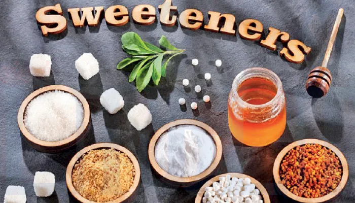 அஸ்பார்டேம், மாங்க் பழச் சாறு, அசெசல்பேம் பொட்டாசியம் (ஏஸ்-கே) மற்றும் சைக்லேமேட், சாக்கரின், ஸ்டீவியா, சுக்ரலோஸ் போன்றவை சர்க்கரைக்கு பதிலாக பயன்படுத்தப்படும் செயற்கை இனிப்புகள் ஆகும். அவை கலோரிகள் இல்லாமல் சர்க்கரையின் இனிப்பை வழங்குகின்றன. இந்த செயற்கை இனிப்புகள் சாதாரண சர்க்கரையை விட பல மடங்கு இனிப்பாக தயாரிக்கப்படுகின்றன, இதன் காரணமாக ஒரு ஸ்பூன் சர்க்கரையின் அதே விளைவை உருவாக்க ஒரு சிறிய அளவு செயற்கை இனிப்பு மட்டுமே தேவைப்படுகிறது. மிகக் குறைந்த அளவு இனிப்பை பயன்படுத்துவதன் விளைவாக, மிகக் குறைந்த கலோரிகள் மட்டுமே உட்கொள்ளப்படுகின்றன.