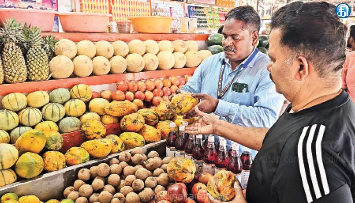 இதில், பழச்சாறு கடைகளில் ஆய்வு மேற்கொண்டபோது சுமார் 200 கிலோ அழுகிய ஆரஞ்சு, வாழை, ஆப்பிள், கொய்யா உள்ளிட்ட பழங்கள் ஜூஸ் தயாரிக்க வைக்கப்பட்டிருந்தது தெரிய வந்தது. இதையடுத்து அந்தப் பழங்களை அலுவலர்கள் பறிமுதல் செய்தனர். அழுகிய பழங்களை பழச்சாறு தயாரிப்புக்காக வைத்திருந்த கடைகளுக்கு ரூ.3 ஆயிரம் அபராதம் விதிக்கப்பட்டது. மேலும் கடை உரிமையாளர்களிடம் அழுகிய பழங்களில் ஜூஸ் தயாரிப்பதால் பொதுமக்களுக்கு ஏற்படும் உடல் உபாதைகள் குறித்து எடுத்துரைத்த அலுவலர்கள் அழுகிய பழங்களை பயன்படுத்தக்கூடாது என எச்சரிக்கை விடுத்தனர்.