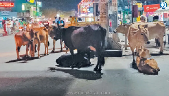 எனவே, சம்பந்தப்பட்ட அதிகாரிகள் சாலையில் சுற்றித்திரியும் நாய்களை கட்டுப்படுத்த வேண்டும். குறிப்பாக மாடுகளை பிடித்து கோசாலையில் அடைக்க வேண்டும். கால்நடைகளின் உரிமையாளர்களுக்கு உரிய அபராதம் விதித்தல் உள்ளிட்ட கடும் நடவடிக்கை எடுக்க வேண்டும் என பொதுமக்கள் வலியுறுத்தி வருகின்றனர்.