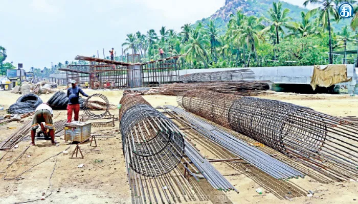 நாகர்கோவில்: கன்னியாகுமரி – காரோடு நான்கு வழிச்சாலையில், தோட்டிகோட்டில் பாலம் அமைக்கும் பணிகள் வேகமாக நடந்து வருகின்றன. ஜூன் மாதத்துக்குள் கான்கிரீட் பணிகளை முடிக்க திட்டமிட்டுள்ளனர். குமரி மாவட்டத்தில் 20 ஆண்டுகளுக்கு மேல் நான்கு வழிச்சாலை பணிகள் நடந்து வருகின்றன. முடங்கி கிடந்த இந்த பணிகள் தற்போது வேகமாக நடந்து வருகின்றன. நாகர்கோவில் – பெருங்குடி (காவல்கிணறு) நான்கு வழிச்சாலை பணிகள் முடிவடைந்து, தற்போது வாகன போக்குவரத்து நடந்து வருகிறது. காரோடு – வில்லுக்குறி, வில்லுக்குறி – நாகர்கோவில், நாகர்கோவில் – கன்னியாகுமரி இடையிலான பணிகள் இன்னும் முடிவடையாமல் நடந்து வருகின்றன. கிடப்பில் உள்ள நான்கு வழிச்சாலையில் 28 பெரிய பாலங்கள், 33 சிறிய பாலங்கள் உள்பட சுமார் 60 பாலங்கள் அமைக்கும் பணி தீவிரமாக நடந்து வருகின்றன.