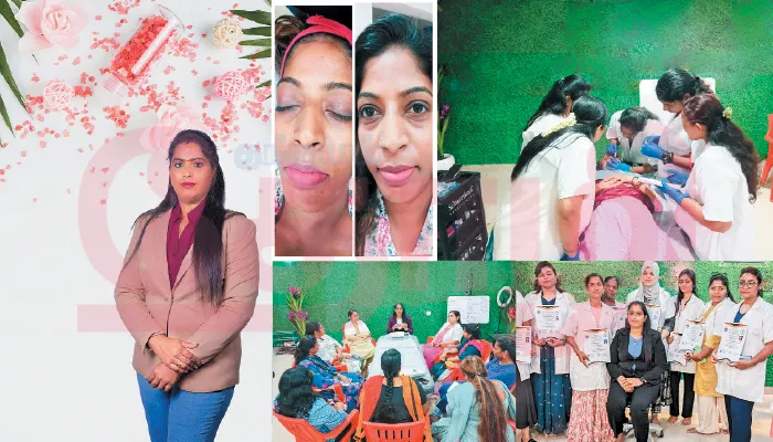 அழகுக் கலை நிபுணர்கள், இல்லத்தரசிகளுக்கு பெர்மனென்ட் மேக்கப்பில் மட்டுமே பயிற்சி அளிக்கிறோம். அதில் ஹைட்ரா ஃபேஷியல், சருமத்திற்கான அல்ட்ராசவுண்ட், பியூட்டி பீல்ஸ், மெடி ஃபேஷியல், புருவத்திற்கான மைக்ரோ பிக்மென்டெஷன், தலைமுடிக்கு மைக்ரோ நீடிலிங், தலைமுடிக்கான டெர்மா ரோலர், பிபி க்ளோ என பல வகை பயிற்சிகள் இதில் அடங்கும்’’ என்றவர் அழகியல் என்றால் என்ன? அதன் பலன்களையும் விவரித்தார். ‘‘அழகுக் கலை மற்றும் அறிவியலை இணைத்து இயற்கையான முறையில் ஒருவரின் சருமம் மற்றும் தலைமுடியினை அழகாகவும் ஆரோக்கியமாகவும் மாற்றி அமைப்பதுதான் அழகியல்.