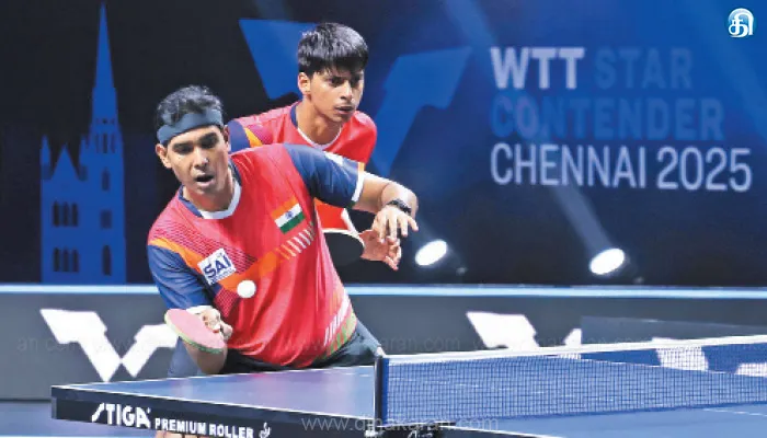 சென்னையில் உலக அளவிலான டபிள்யுடிடி நட்சத்திர வீரர்கள் பங்கேற்கும் டேபிள் டென்னிஸ் போட்டி நடந்து வருகிறது. நேரு உள்விளையாட்டு அரங்கில் நடைபெறும் இந்த போட்டியில் நேற்று கால் இறுதிக்கு முந்தைய சுற்று ஆட்டங்கள் நடைபெற்றன. அதில் ஆண்களுக்கான இரட்டையர் பிரிவு ஆட்டம் ஒன்றில் இந்தியாவின் அச்சந்தா சரத் கமல்/ஸ்னேகித் சுரவாஜ்ஜூலா இணை, ஆஸ்திரேலியாவின் நிக்கோலஸ் லும்/ஃபின் லூவ் இணையுடன் மோதியது. இரண்டு தரப்பும் சமமான பலத்தை வெளிப்படுத்தியதால் ஆட்டத்தில் அனல் பறந்தது. இருப்பினும் கூடுதல் வேகம் காட்டிய இந்திய இணை 11-6, 7-11, 13-11, 6-11, 11-9 என்ற செட் கணக்கில் வெற்றி பெற்று, கால் இறுதிக்கு முன்னேறியது.
