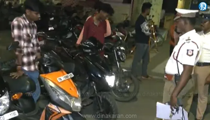 காவல்துறையினரின் கட்டுப்பாட்டை மீறி மீண்டும் பைக் ரேஸ், சிசிடிவியில் சிக்காமல் இருக்க நம்பர் பிளேட்டுகளை மறைத்து இளைஞர்கள் சாகசத்தில் ஈடுபட்டனர். காவல்துறையினர் அண்ணாசாலை, ஸ்பென்சர் சிக்னல், ஜிபி ரோடு, மெரினா காமராஜர் சாலை போன்ற பல்வேறு பகுதிகளில் தடுப்புகள் அமைத்து தீவிர வாகன சோதனையில் ஈடுபட்டனர். இளைஞர்கள் நம்பர் பிளேட்டுகளில் துணி வைத்து மறைத்தும் நம்பர் பிளேட்டுகளை சுழற்றி வைத்தும் சாமர்த்தியமாக பைக் ரேஸ்களில் ஈடுபட்டதா போலீசார் தெரிவித்தனர்