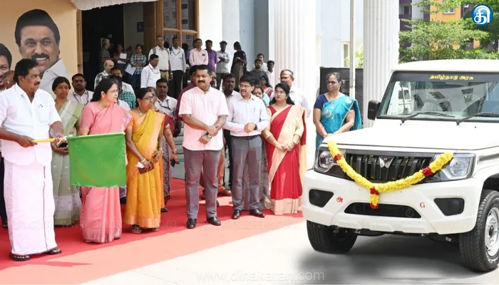 வணிகவரி அலுவலர்களின் பயன்பாட்டிற்க்காக 7 புதிய வாகனங்கள்: அமைச்சர் பி. மூர்த்தி, கொடி அசைத்து தொடங்கி வைத்தார்